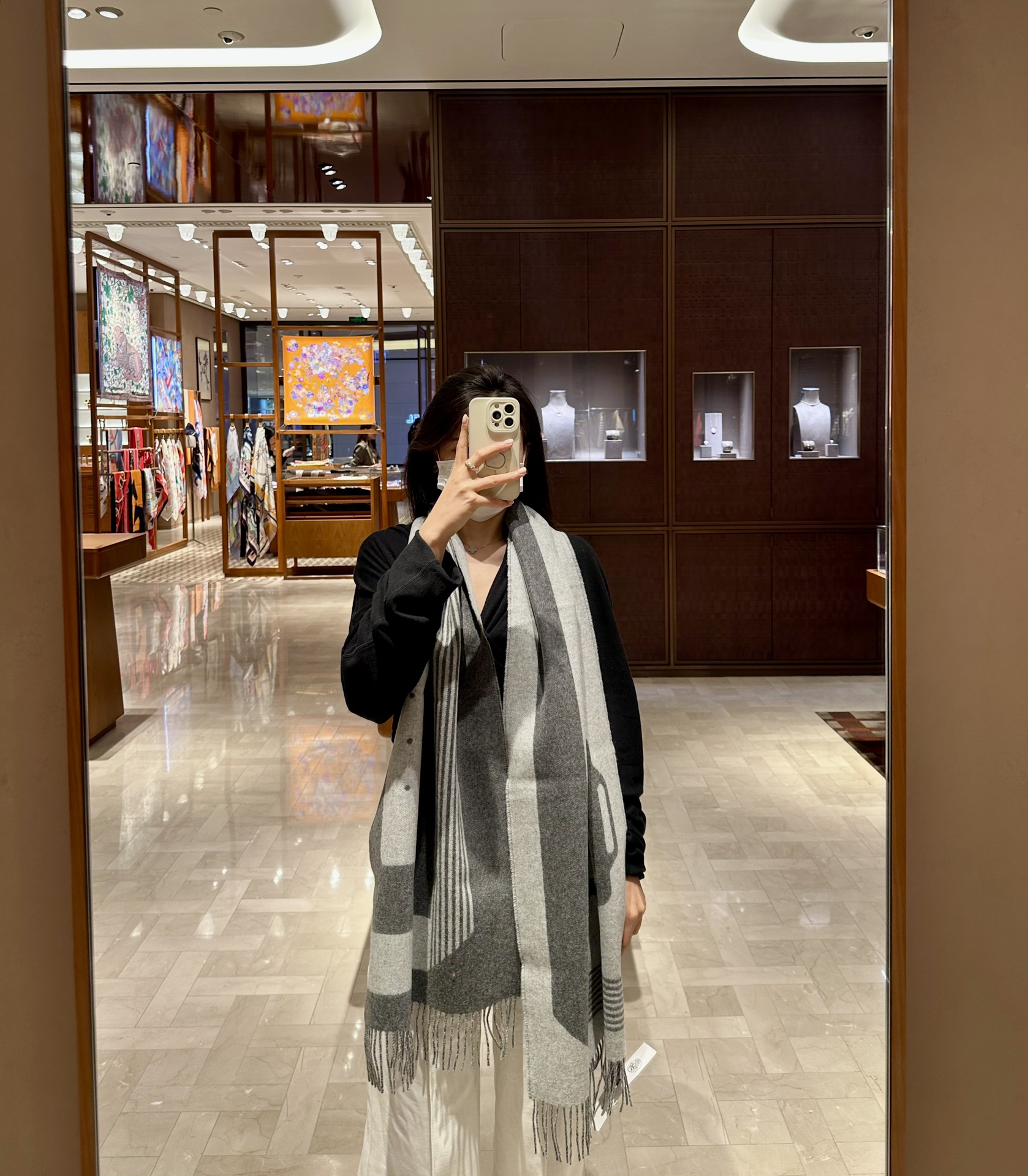 新品サドルストラップ(鞍帯)カシミヤスカーフ:ジオメトリック柄で騎士スタイルを凝縮し、ジャガード編み工芸を採用。エルメス特有の「騎士」テーマのスカーフデザインを取り入れ、生き生きとした馬術風を立体的に表現しています。柄はシンプルかつ大気なデザインで、男性女性問わず使用可能で、クールな印象を与えます。「1.1 オーダーメイドレベル」の精緻な工芸を誇り、着用すると全体の OOTD(今日のコーディネート)の高級感を一気に引き上げます!