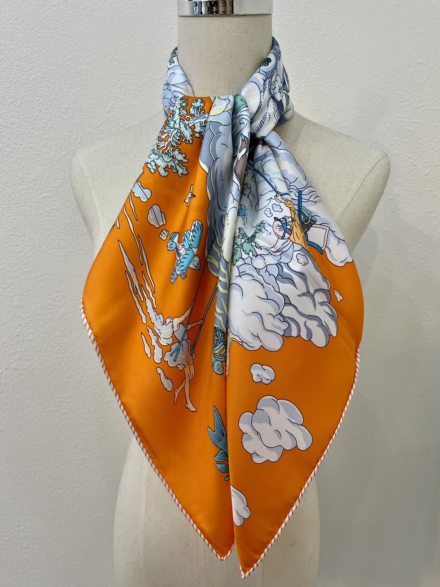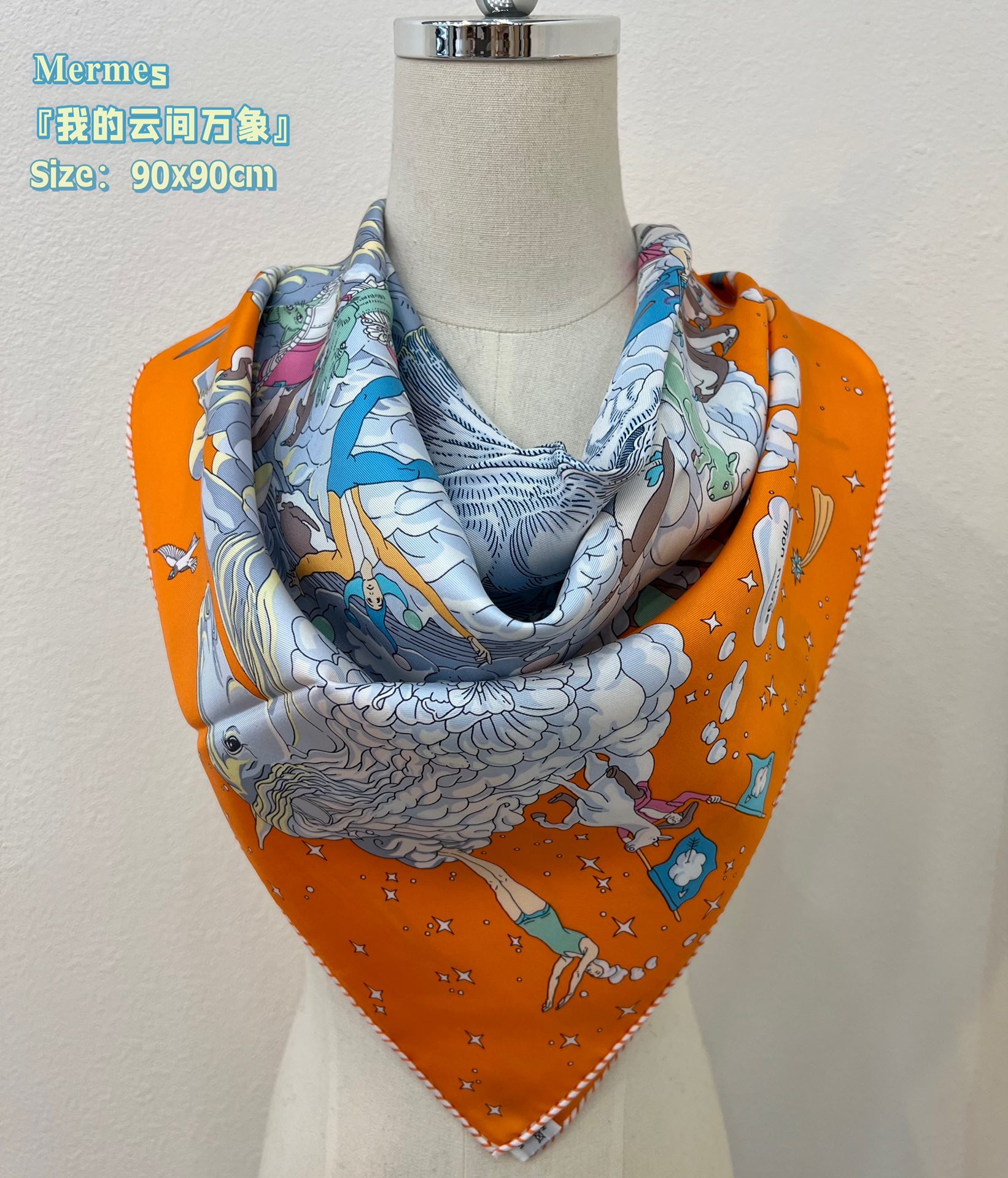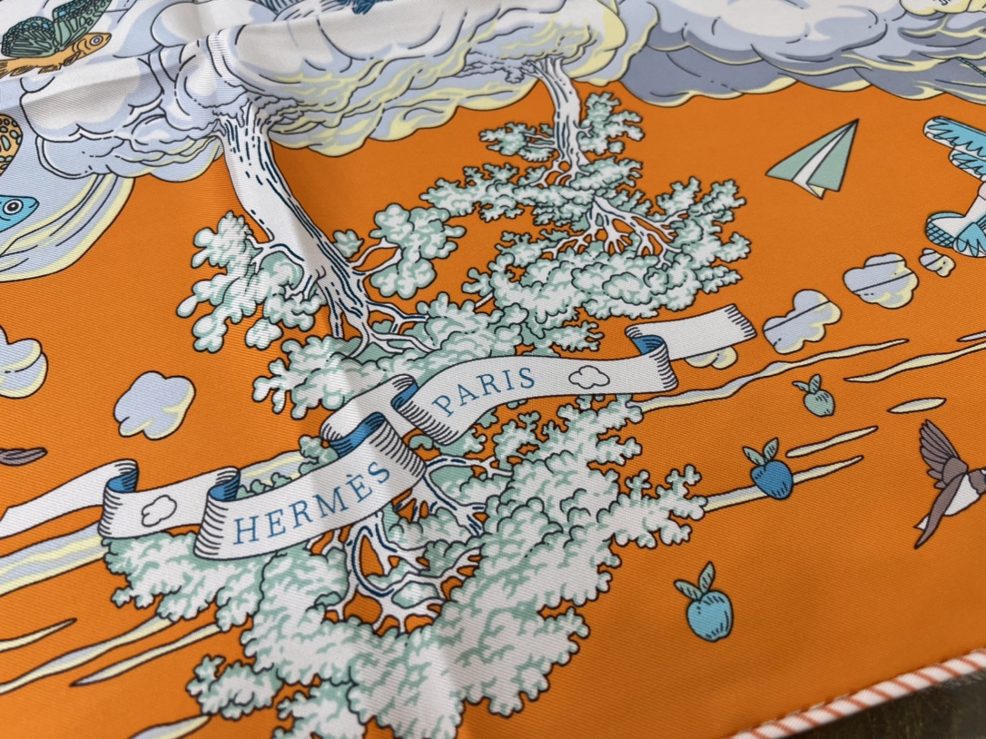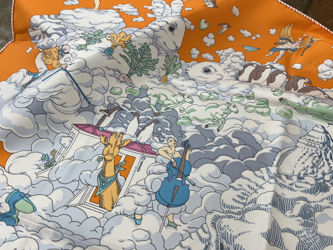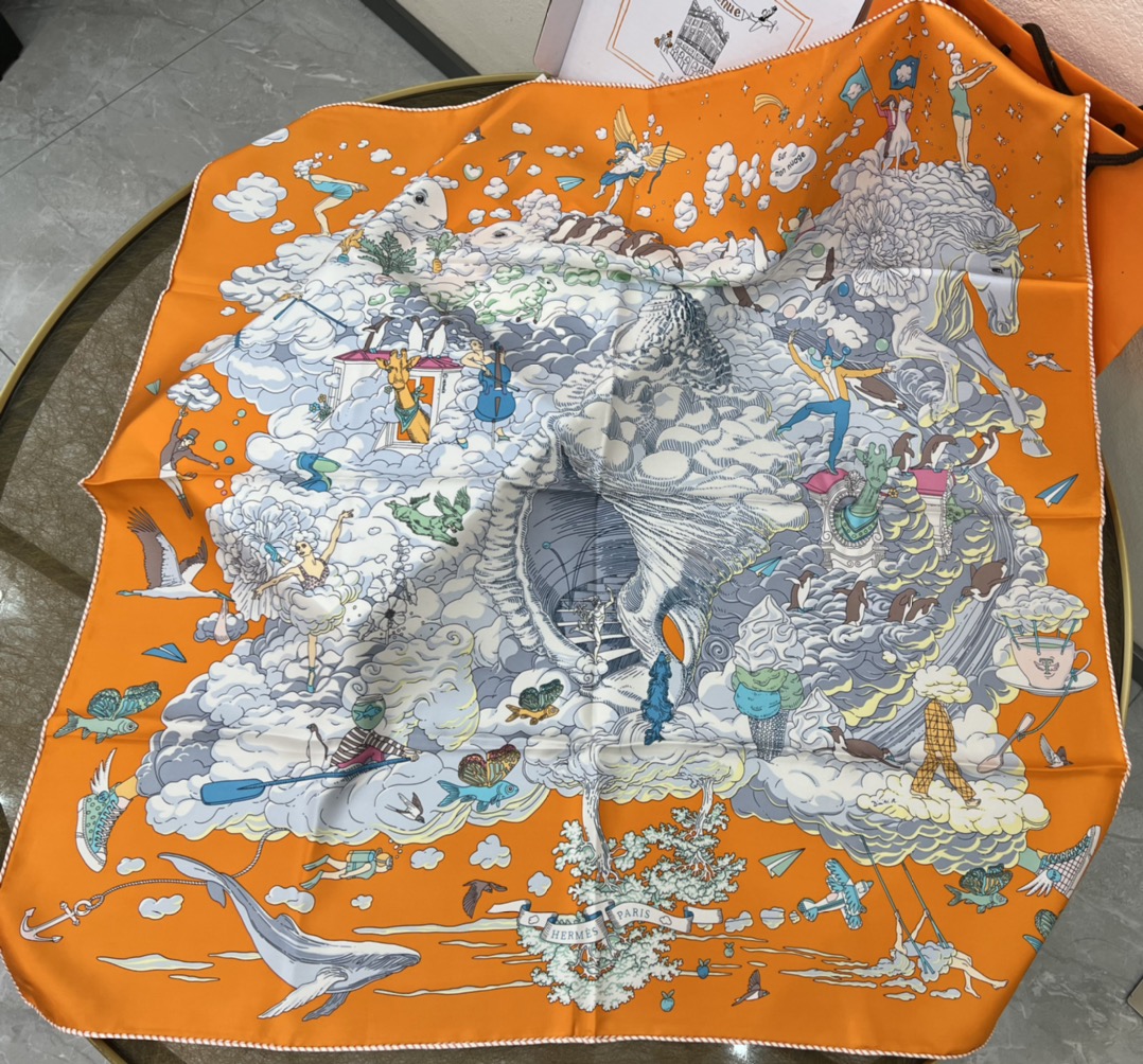 ディミトリ(Dimitri)のデザインはまるで夢のような誘いで、このスカーフは童心にあふれ、想像力を掻き立ててくれます。天辺の雲の上を自由自在に巡る喧騒を体感させつつ、同時に海底の深い静けさも感じさせ、雲が広がり収まる様子の中にも自由で夢いっぱいの雰囲気があふれています。優雅さと童心が調和し、配色は高級感に満ちており、贈り物としても自分用としても非常におすすめです~。