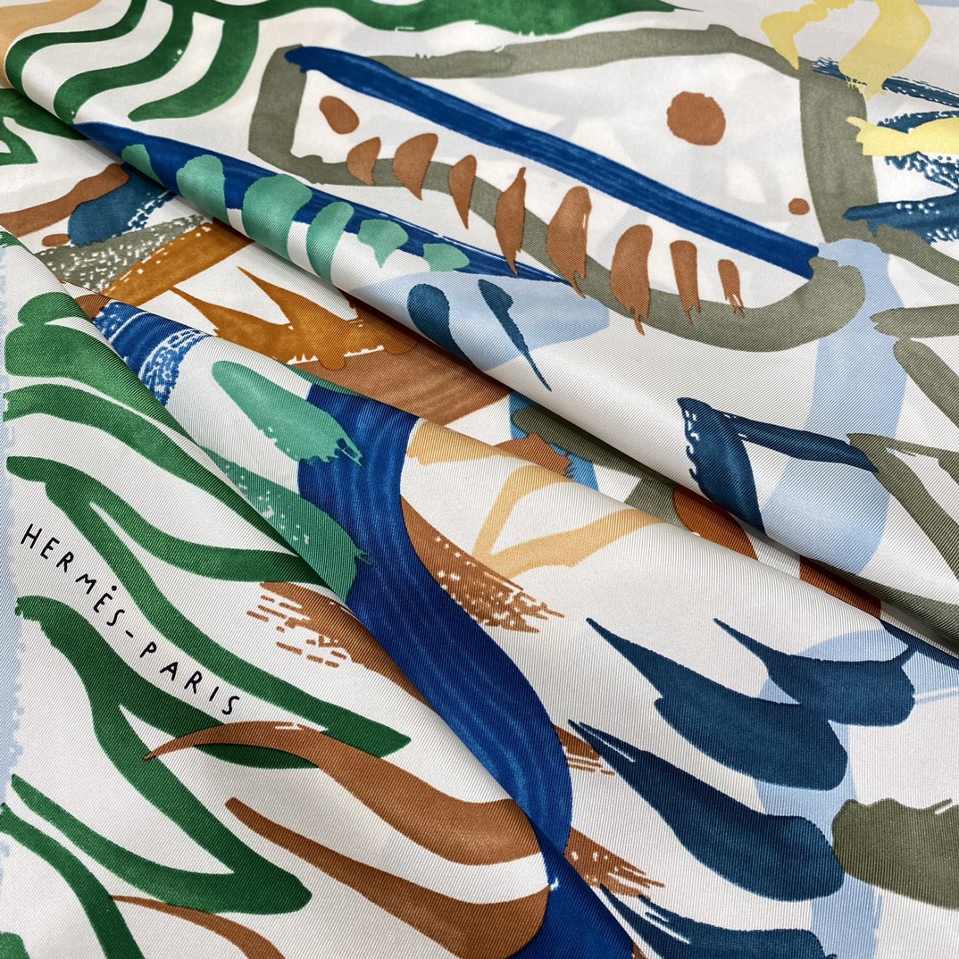 オリジナルスペックの生地を使用!精緻な手作業による縁かがりを施し、配色は高級感あふれるデザインで❤️デザイン内容が鮮明、ラインの存在感も強い特徴を持ちます!デザインのインスピレーションは、中世の写本(マニュスクリプト)、愛と戦争をテーマにした叙情詩の手稿(手書き原稿)、さらに 1960 年代に世界的に評価の高かったポーランドのポスターから得られています。21 世紀の「騎士詩人」として、デザイナーは太く、まるで子供のような天真烂漫な筆致で輪郭を描き、このスカーフに明るく陽気な雰囲気を添えています。