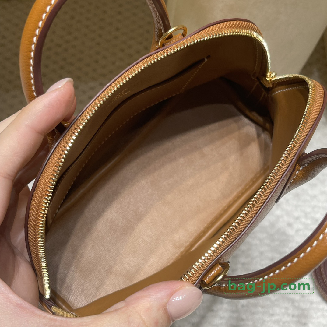 新たな輝きを放つ「ミニボライド」ボウリングバッグが入荷!高級なシェブルミゾル チェヴレ(山羊革)を使用した 37 / ゴールドモデルは、落ち着いた光沢感のあるゴールドカラーが目を引き、カジュアルな雰囲気にハイテンションなアクセントを加えます。柔らかな風合いの素材とシンプルなデザインのバランスが秀でており、内部には財布・スマホ・化粧品をストレスなく収納できる実用的なスペースを備えています。肩掛け / 手提げの 2way 仕様により、使い勝手も抜群。年齢・性別を問わず使える万能デザインは、デイリーのカジュアル装いからナイトアウトやパーティーシーンまで活躍します。山羊革ならではの質感と、ゴールドカラーの存在感が魅力的な一枚、ぜひあなたのスタイルに彩りを加えてみてください!