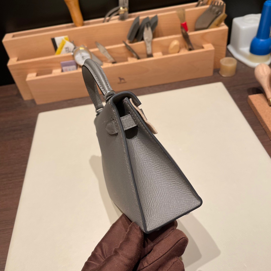 ヴォーエプソン Epsom グリメイヤー 0L/ Gris Meyer シルバー金具 kellymini-075 全手縫い エルメスケリーミニ Kelly bag miniMini Kelly New stock